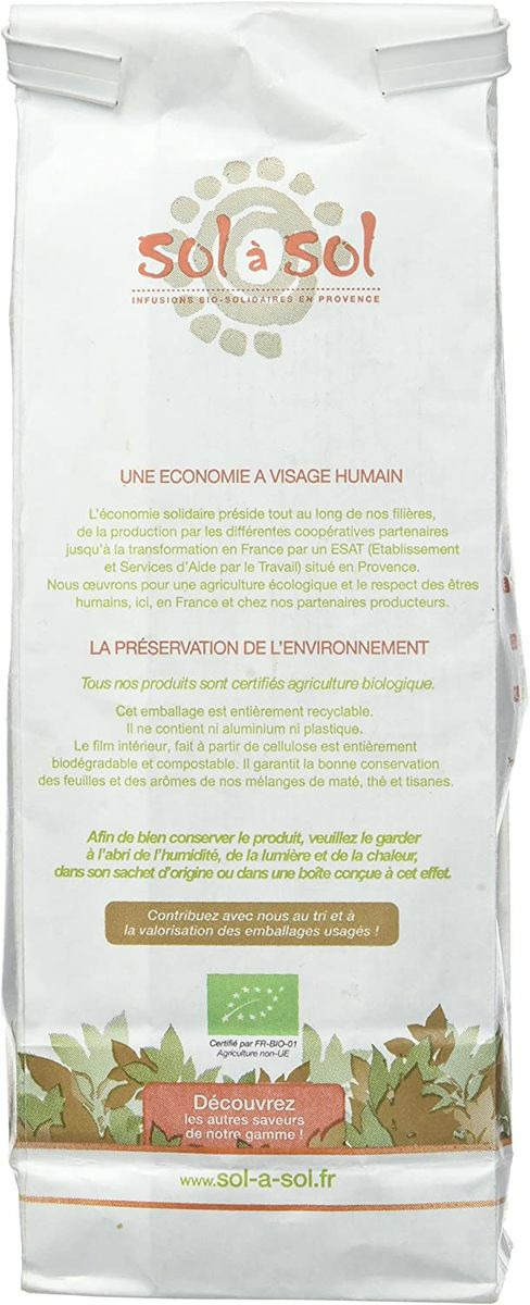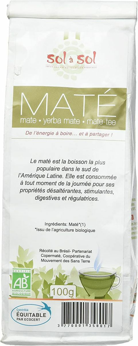 Une nouvelle journée et de multiples activités en IE rien de mieux qu'une infusion pour stimuler l'organisme et la motivation. Composé de caféine, source de vertus et bienfaits, le maté est une véritable alternative au café. Notre maté vert Sol à Sol, certifié bio, est composé de feuilles sélectionnées d'excellente qualité prêtes à infuser.