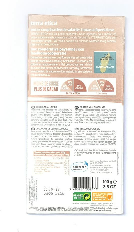 Chocolat lait Madagascar 50% 100g Terra Etica