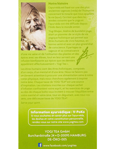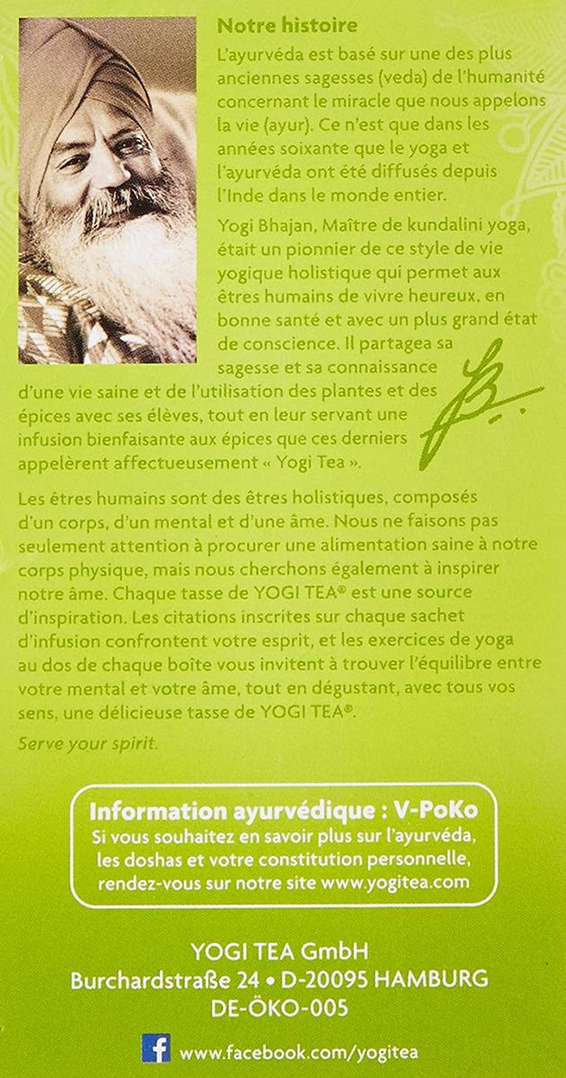 A l'intérieur de chaque boite de Yogi, vous trouverez quelques exercices de Yoga facile à faire chez vous, en adéquation avec la tisane. Ils permettent non seulement une détente mais aussi une invitation au changement...