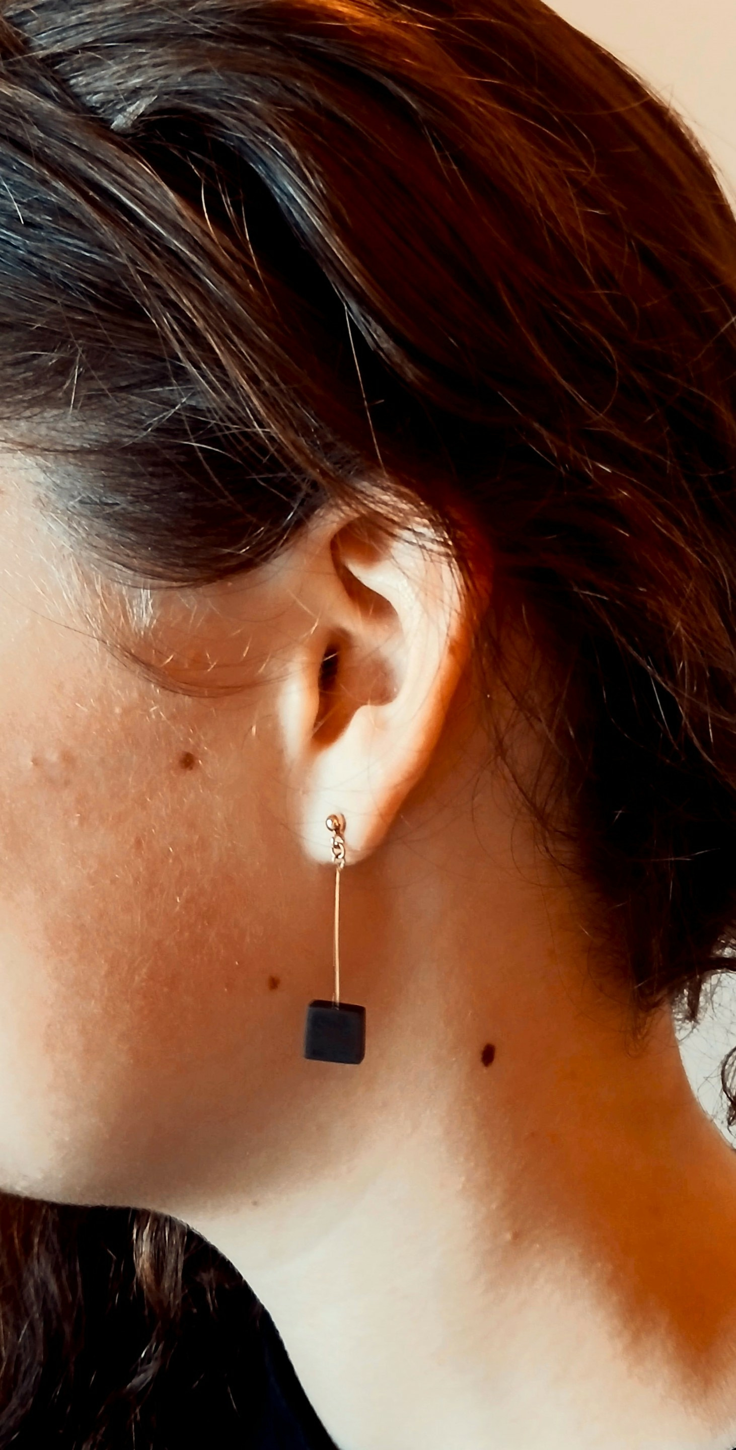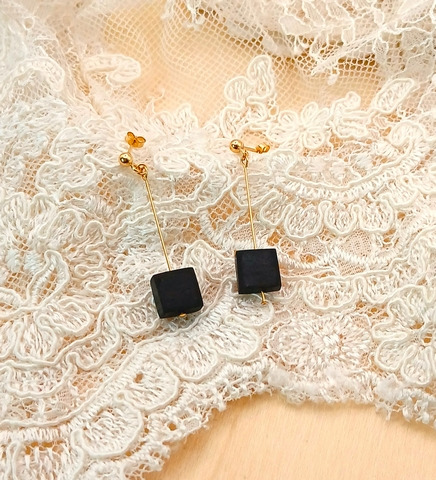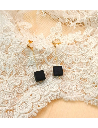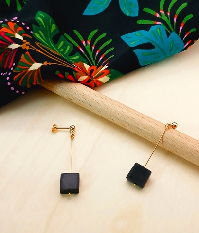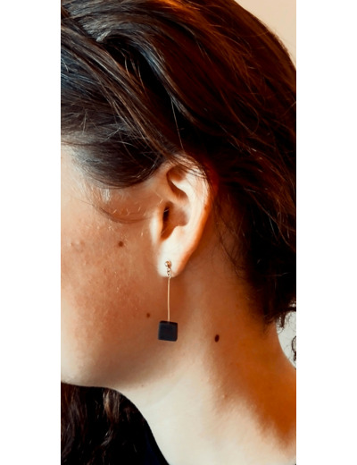 Paire de boucles d’oreilles en Palissandre, dimension forme carré 8x8 mm. Montées sur tiges boule et poussettes en Gold Filled.