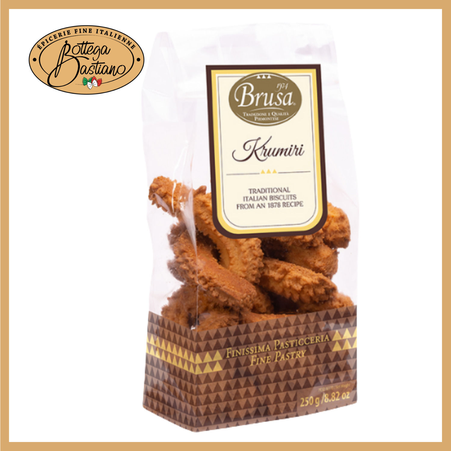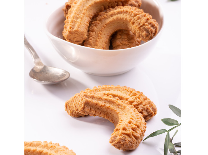 Les Krumiri se distinguent par leur texture croustillante et leur goût riche en beurre. Leur forme arquée et striée évoque la moustache royale, ajoutant une touche d'élégance à leur apparence. Ces biscuits sont parfaits pour accompagner un café, un thé ou un vin doux, et sont souvent dégustés lors des fêtes ou offerts en cadeau.