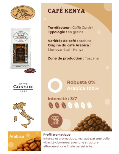 Kenya, café 100% Arabica, la meilleure variété de café, des hauts plateaux africains du Kenya.