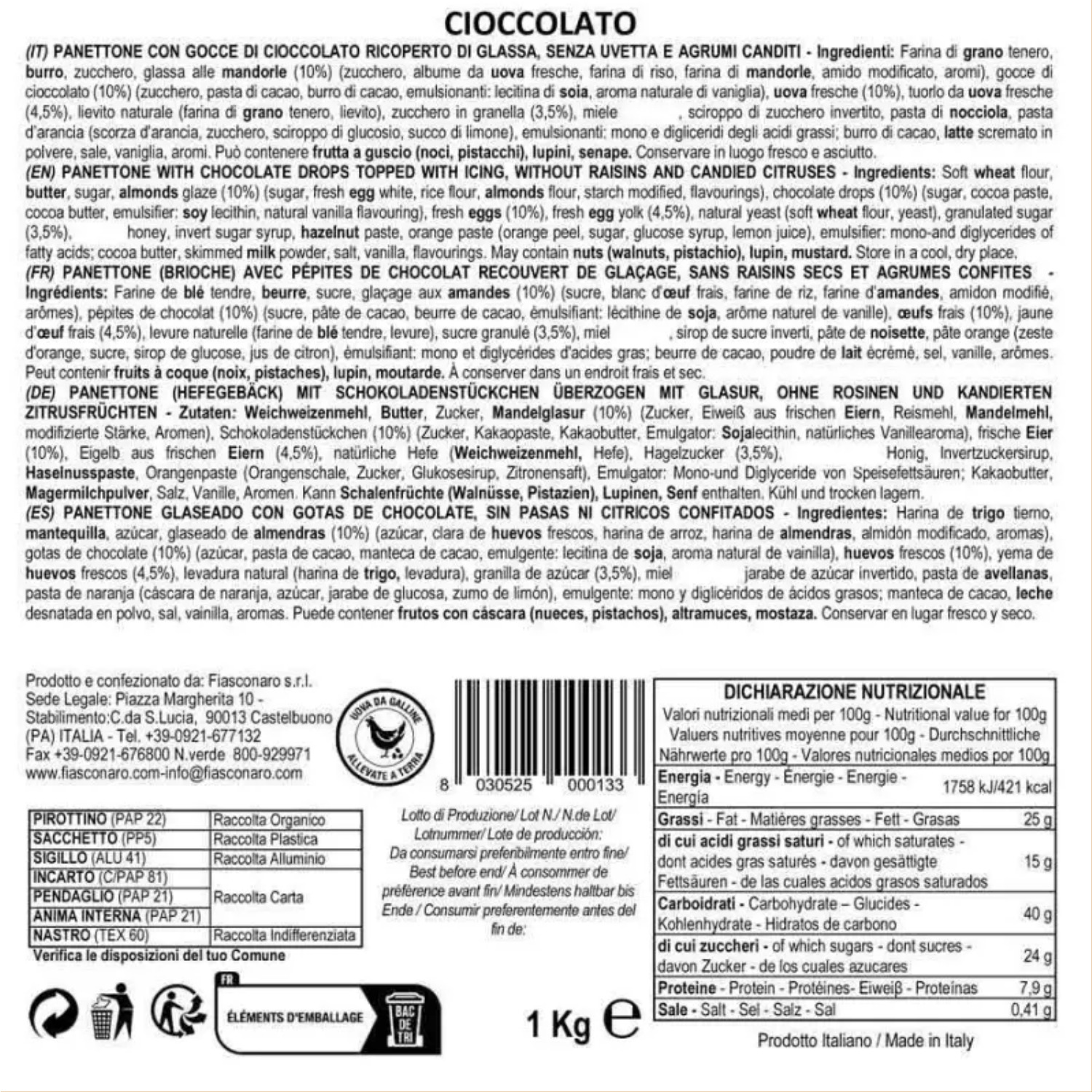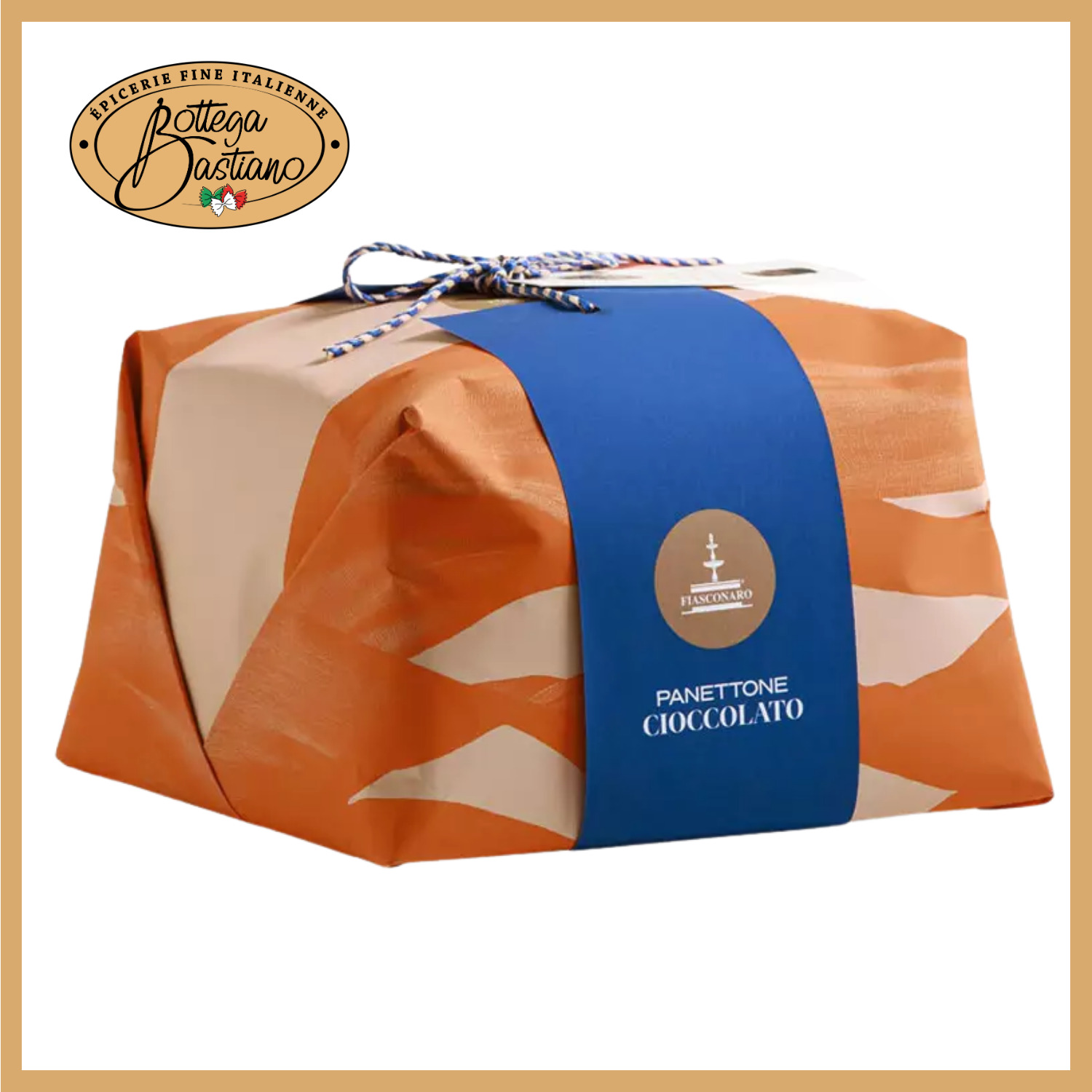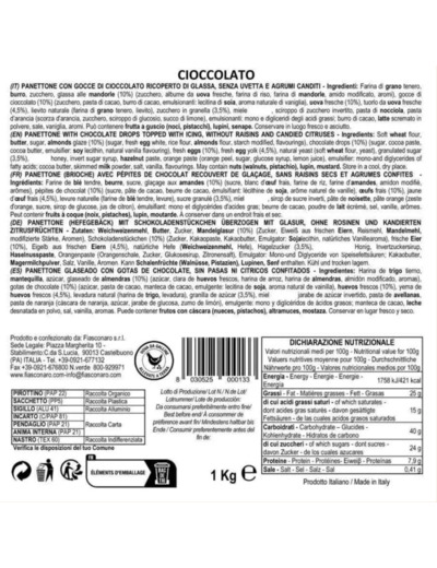 Panettone artisanal au levain naturel, façonné et emballé à la main. Recouvert d’un glaçage croustillant aux amandes et au sucre, il offre une pâte ultra-moelleuse généreusement garnie de pépites de chocolat.