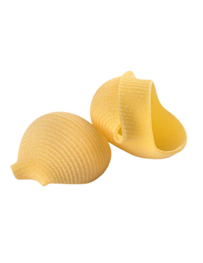 Les Lumaconi sont des pâtes composées à 100% de semoule de blé dur tréfilée au bronze, soumises à un séchage lent pour préserver ses propriétés organoleptiques, nutritionnelles et saines et ainsi valoriser tout type d'assaisonnement.