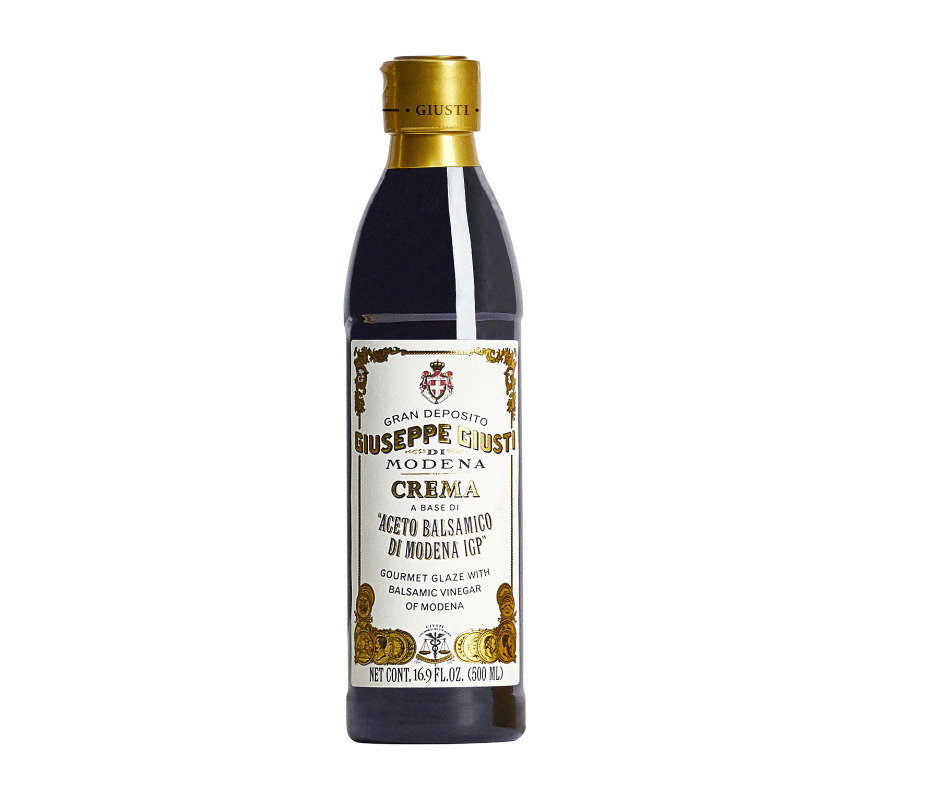 Ingrédients: Vinaigre balsamique de Modène 60% ( moût de raisin cuit et concentré), sirop de glucose, amidon de maïs modifié. Contient des sulfites.