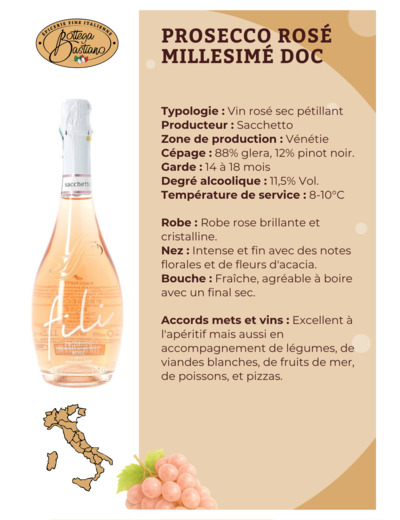Ingrédients: 88% glera, 12% pinot noir. Contient de sulfites.