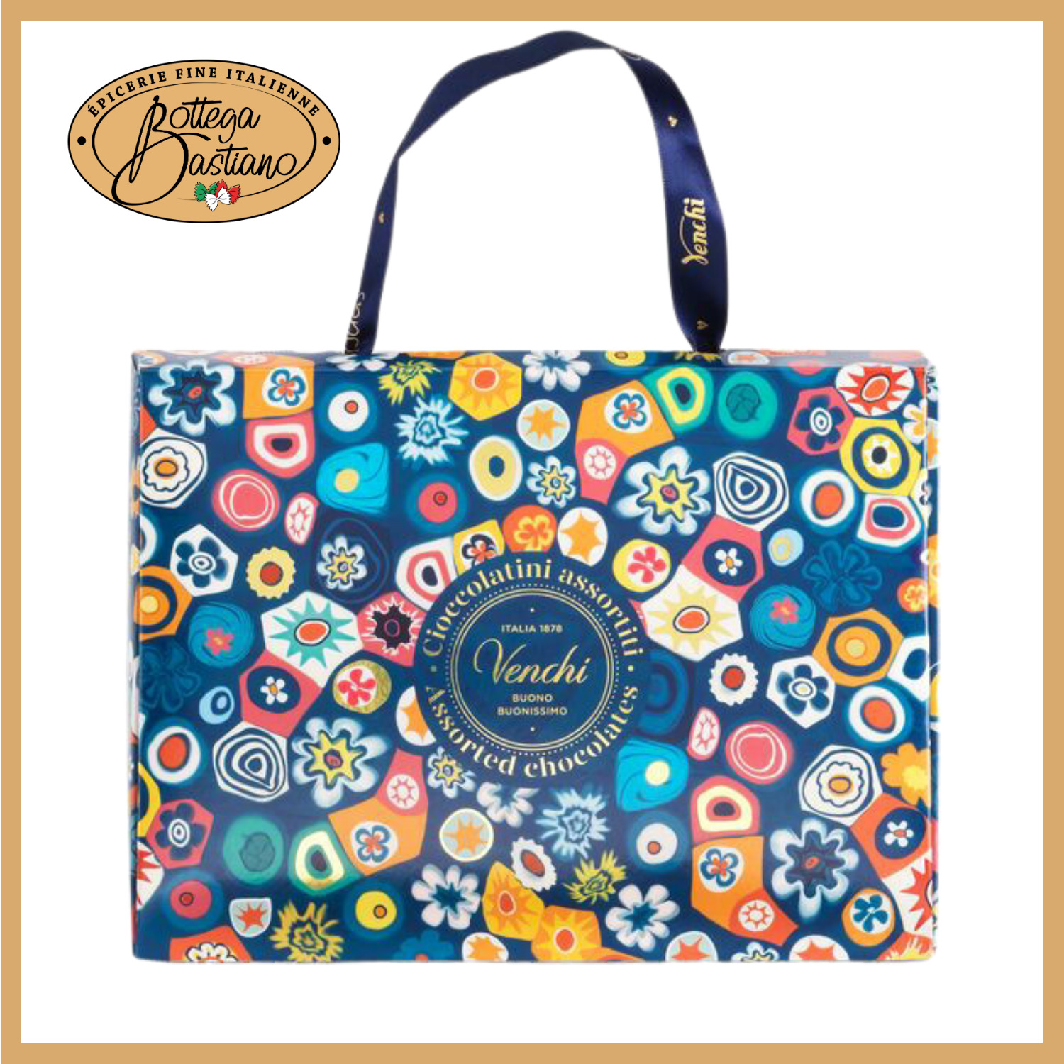Inspirée de l’art vénitien des murrine, cette collection marie créativité et gourmandise. Dans chaque écrin, des chocolats au lait et noirs renferment un cœur croquant de noisettes entières du Piémont IGP et de pistaches sélectionnées. Un hommage à la tradition artisanale italienne, à savourer et à offrir. Naturellement sans gluten.