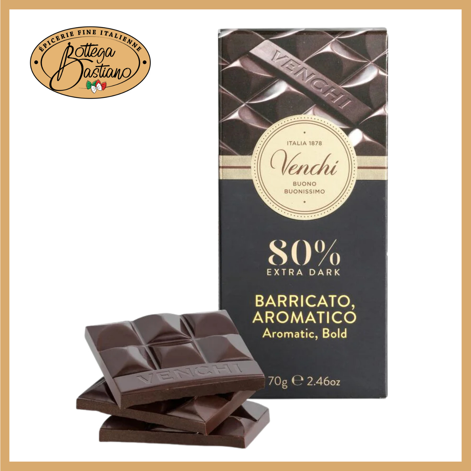 Offrez-vous la Tablette 80% Extra Noir de Venchi et vivez une aventure chocolatée comme jamais auparavant. Ce chocolat noir d'exception est un incontournable pour les passionnés de chocolat et les gourmets en quête de nouvelles sensations.
