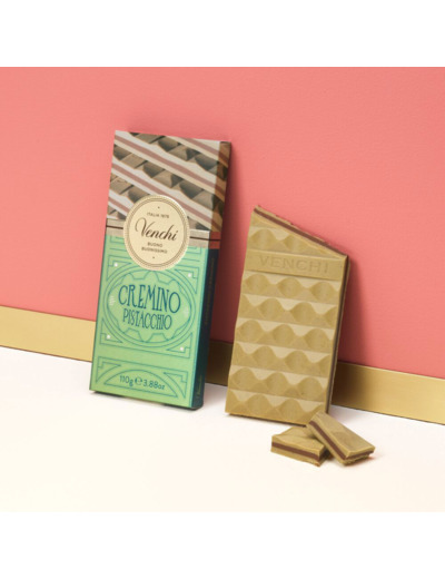 Laissez-vous séduire par le Cremino Pistache de Venchi et savourez une symphonie de saveurs qui évoque la douceur et la richesse du bassin méditerranéen.