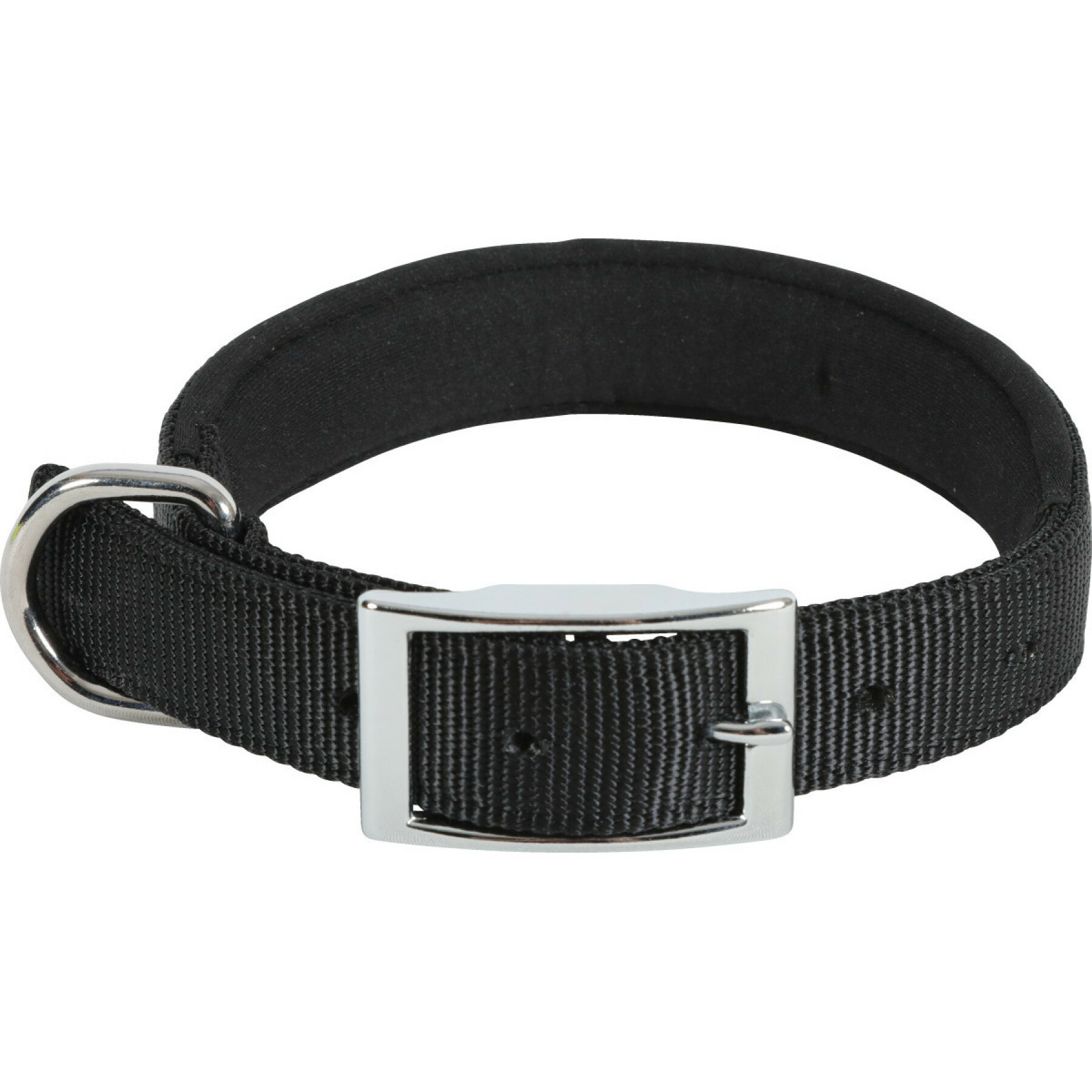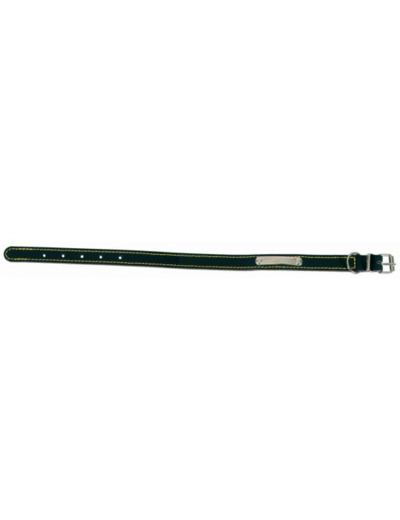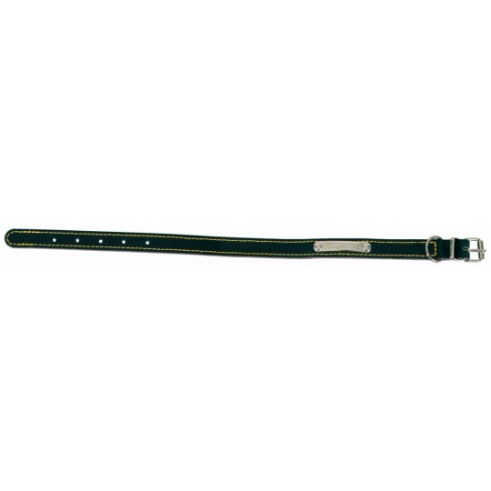 Collier en cuir noir piqué pour chien de la marque Zolux, avec plaque métallique sur laquelle on peut graver ce que l'on souhaite (nom de l'animal, numéro de téléphone...)