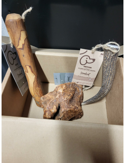 > Le bois d'olivier pour chiens, c'est LE jouet artisanal résistant enrichi en huile d'olive naturelle qui ne s'écharde pas.