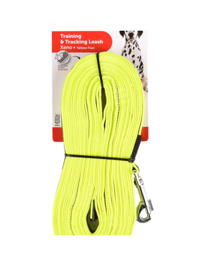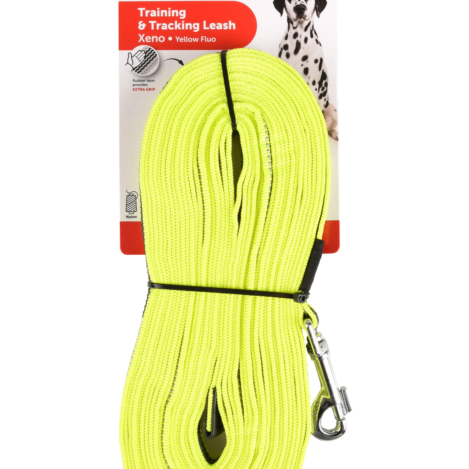 Cette laisse d'entraînement de 10m pour chien est fabriquée en caoutchouc pour une adhérence supplémentaire et est très voyante, même dans l'obscurité !