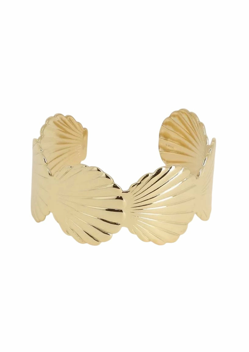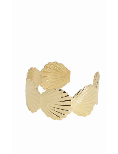 Bracelet type manchette en acier inoxydable composé de motifs coquillages.