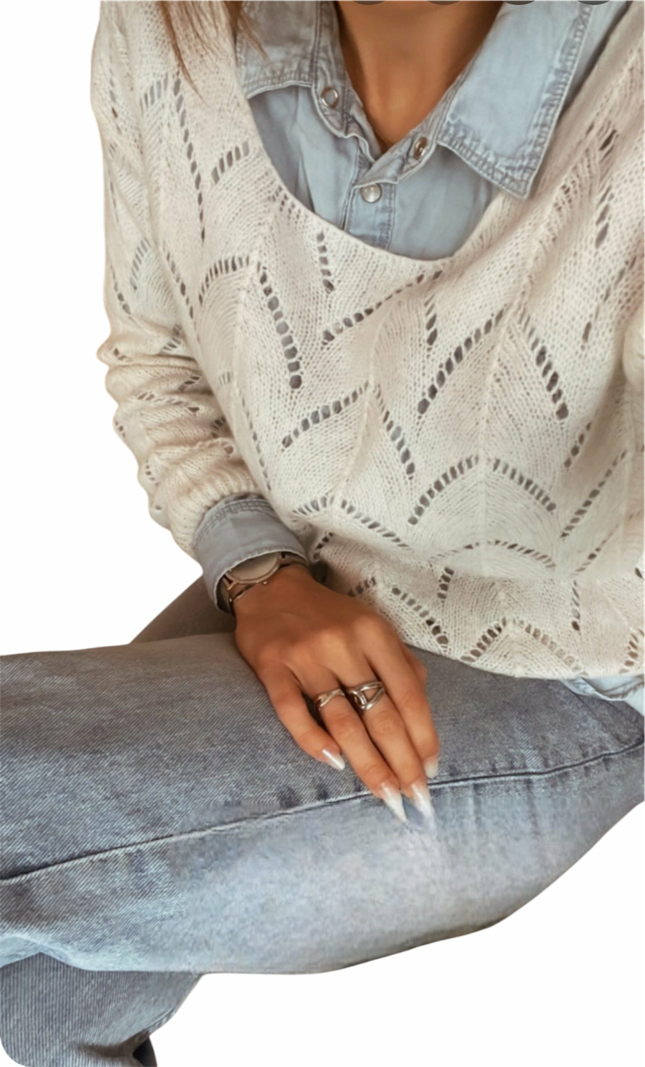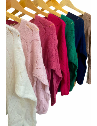 Le Pull ajouré Adeline est idéal pour créer des superpositions élégantes et confortables. Avec sa texture douce et ajourée, il peut être porté sur une chemise, une robe ou même avec un haut en dessous. Convient aux tailles 34 à 42.