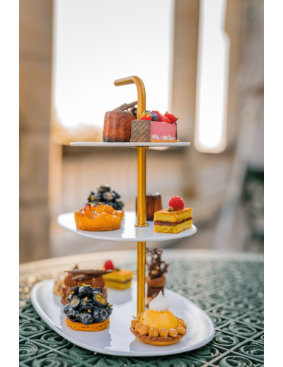 On vous propose une sélection de thés « Palais des thés », cafés ou jus de fruits « Vergers de la Manse » accompagnée d’un assortiment de pâtisseries faites maison par notre chef pâtissier Franck Joly et sa brigade.