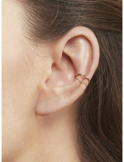 Voici un bijou qui sort de l’ordinaire ! Georges est une bague d’oreille double, composée d’un jonc or et d’une chaîne fine. Il s’adapte à l'oreille puisqu’il s’écarte ou se resserre légèrement pour épouser votre cartilage. Cette boucle d’oreille sans piercing est idéale pour celles qui ne souhaitent pas pousser la porte d’un perceur !