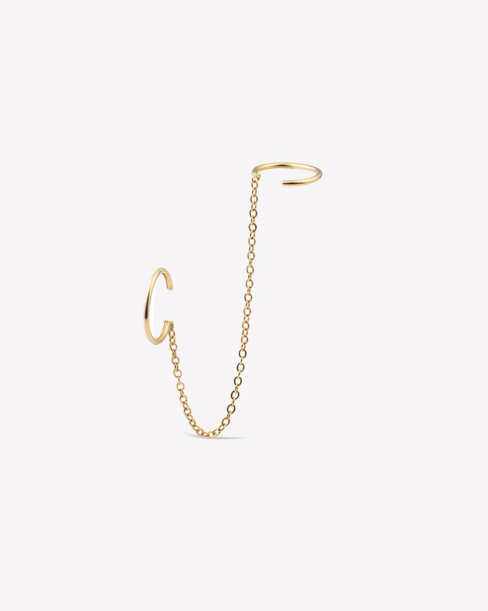 Entretenez votre singularité avec un bijou d'oreille façon chaîne ajustable selon vos envies. Avec ou sans piercing, les bagues d’oreilles dorées de Camille se placent aussi bien en ear cuff ou dans les trous que vous possédez au lobe ou à l’hélix.