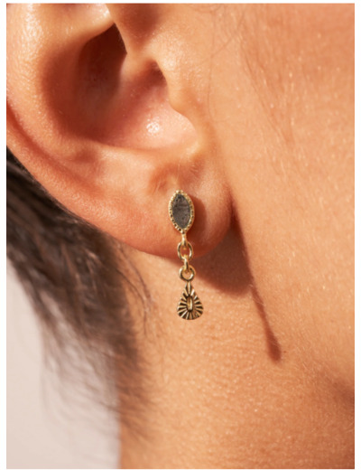 Nala signifie "chance" en swahili. Discrète et raffinée, cette boucle d’oreille révèlera votre féminité en mettant à l'honneur les pierres naturelles et les pampilles emblématiques de la Be Maad.