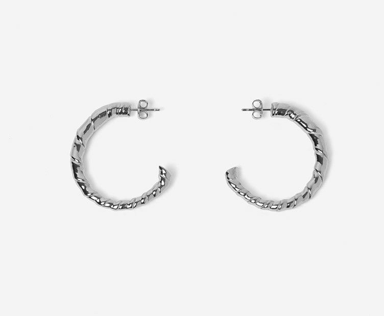 Effet Waouh garantit avec les boucles créoles Athena. On adore ses gravures irrégulières en métal argenté et torsadé.