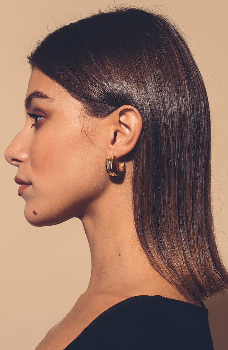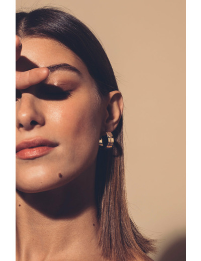 Chic aux motifs ethniques, les boucles d'oreilles Odessa, façon petites créoles sont en métal doré à l'or fin. Délicatement texturé, elles apporteront légèreté mais aussi caractère et efficacité aux looks d'hiver comme d'été.