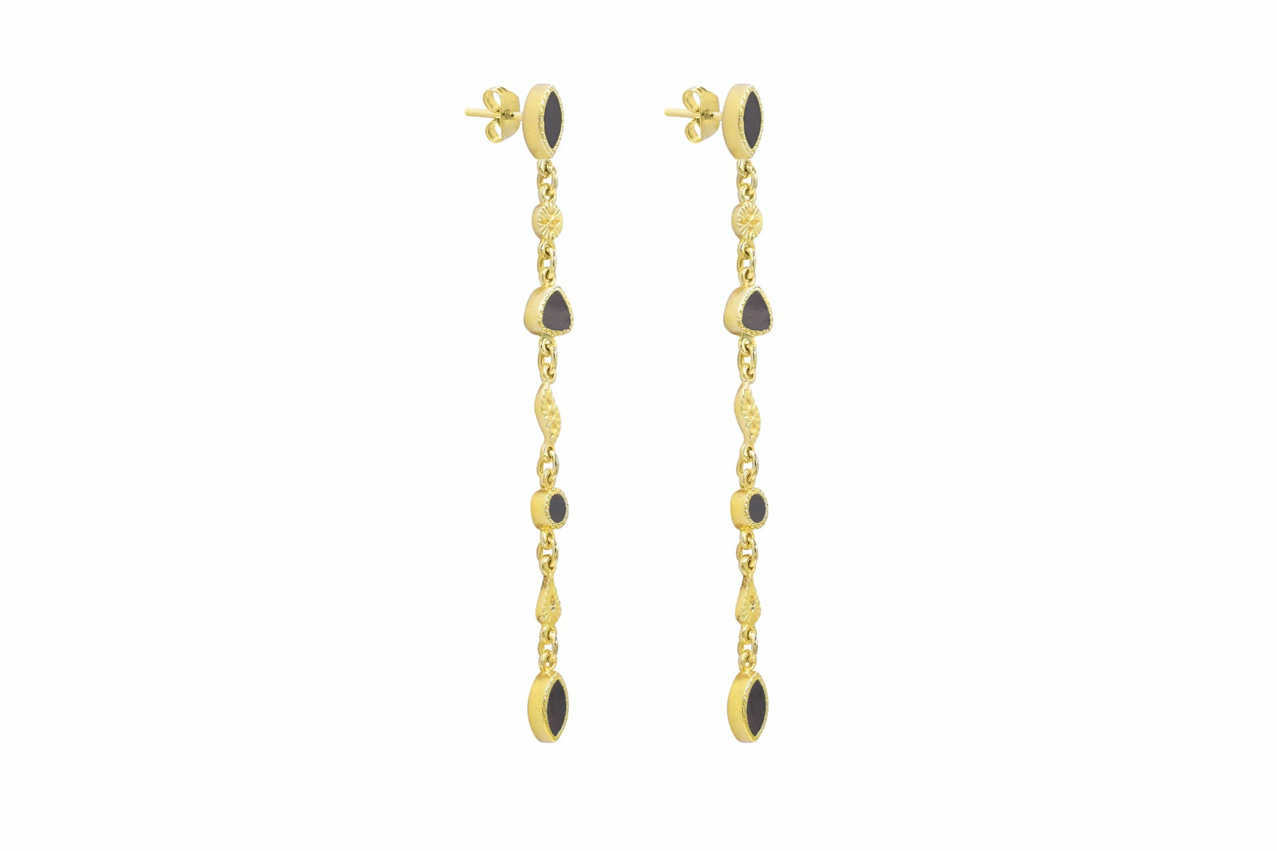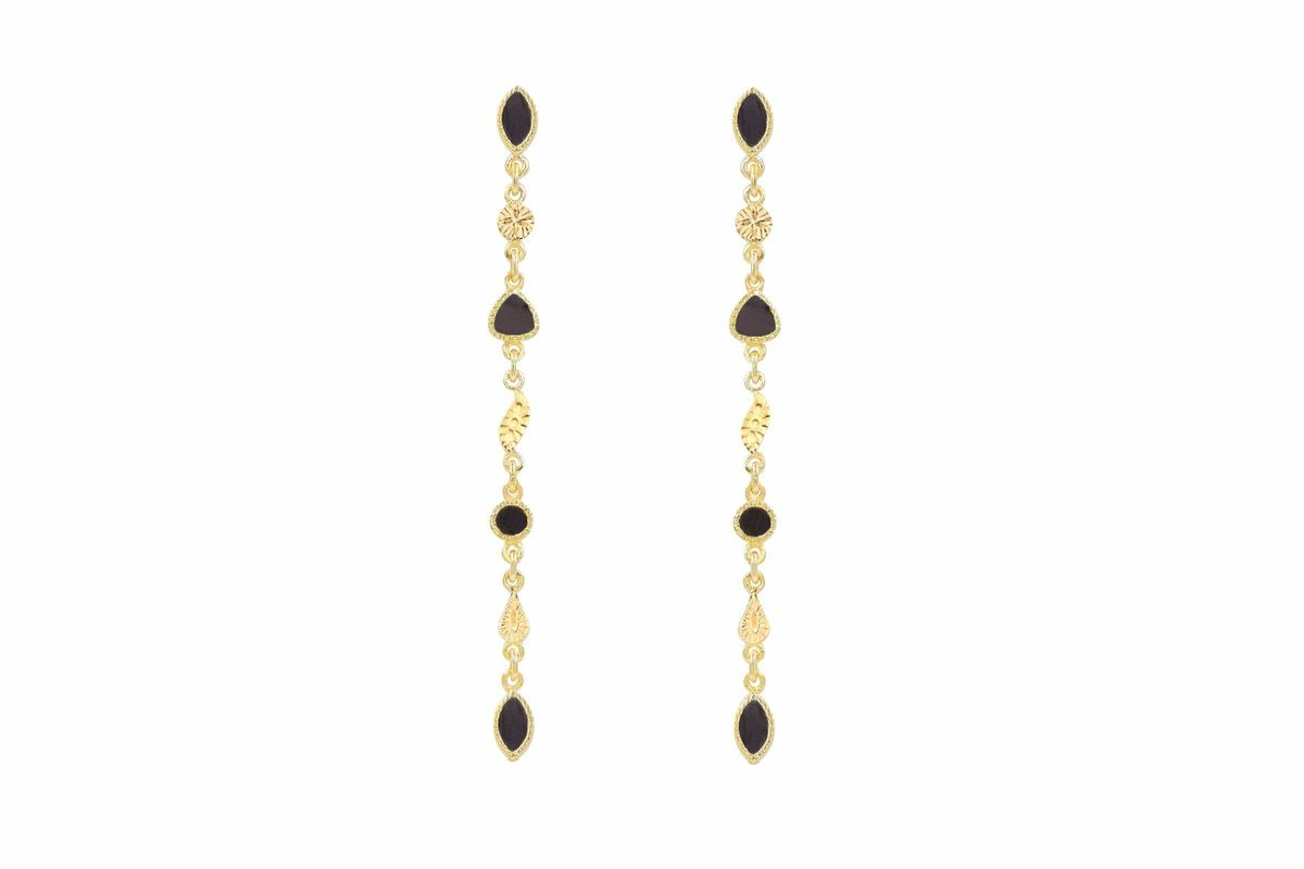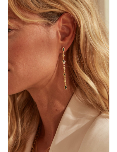 Éblouissantes et lumineuses avec leurs feuilles d'or apposées à la main et serties de pierres semi-naturelles, les boucles d’oreilles Macha sauront faire rayonner vos tenues avec caractère.
