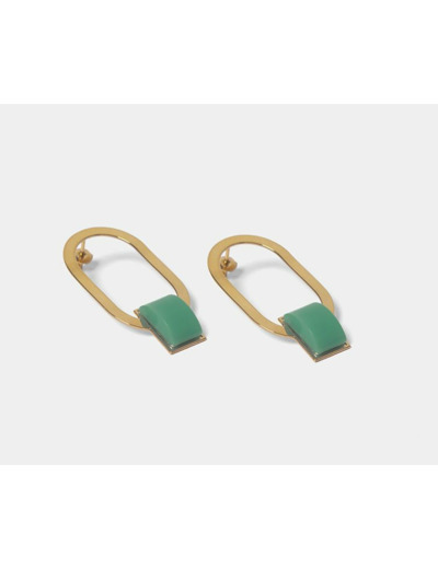 Grandes boucles d'oreilles ovales Chic Alors compos\u00e9es d'une forme g\u00e9om\u00e9trique dor\u00e9e \u00e0 l'or fin, rehauss\u00e9e d'un cabochon en verre color\u00e9.<\/p>\n