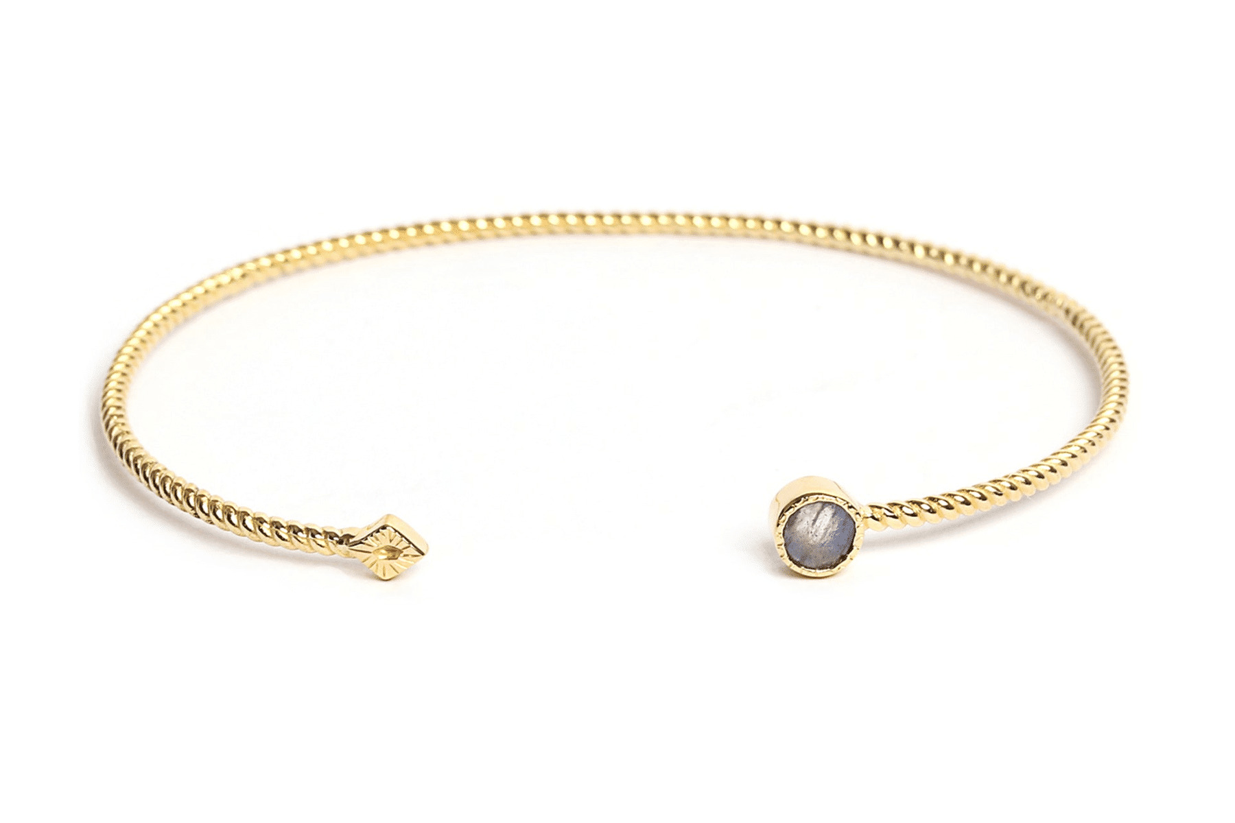 Labradorite : Pierre nervurée aux reflets bleutés, elle fascine par son spectre de couleurs unique.