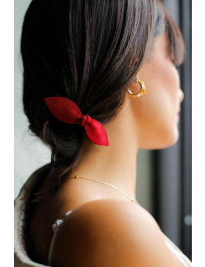Ce chouchou-bijou Rouge Velours sera l'accessoire parfait pour vos looks, de jour comme de nuit ! Seul autour d’un chignon ou en double pour des nattes, cet élastique pour cheveux sera votre allié de style pour toutes vos coiffures.