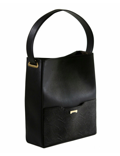 Sac Bucket en Cuir Vegan Jenah St. - Grand Modèle - Noir détail imprimé