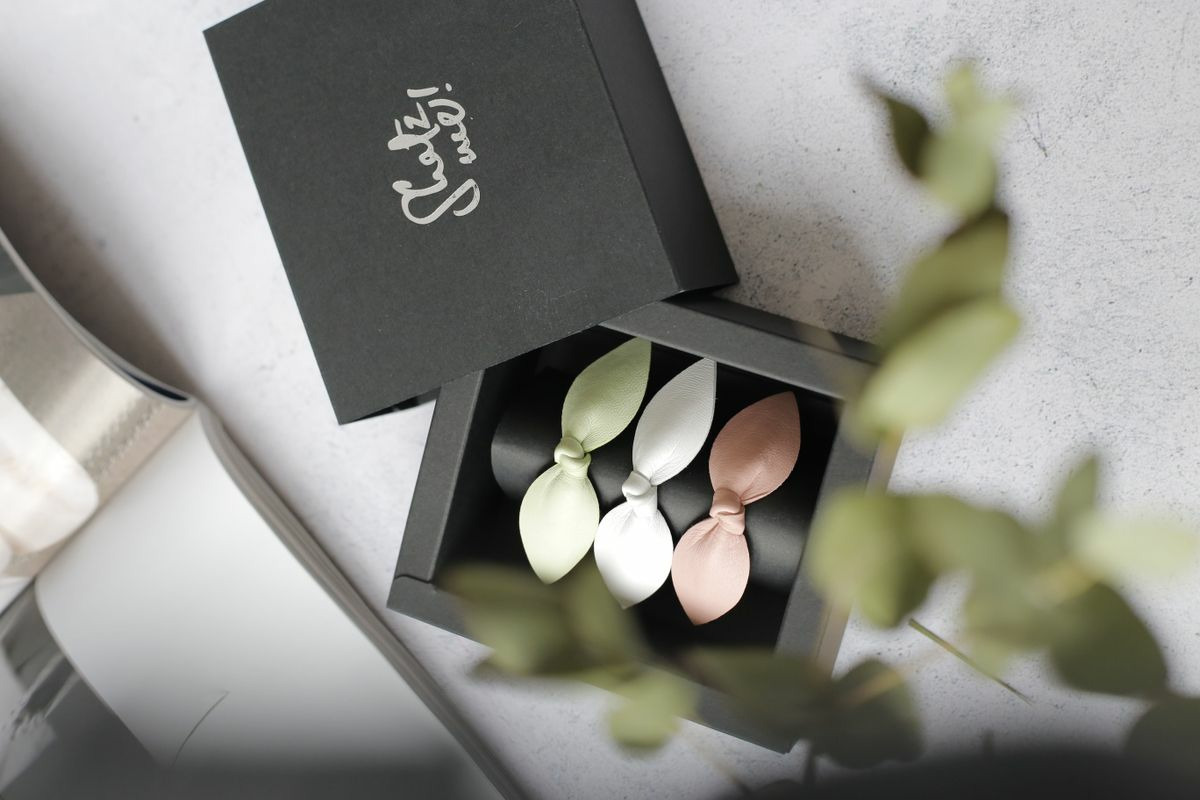 Réalisée à Belgrade par la fondatrice de Shatz Me, chaque pièce est créé à la main. Le noeud est soutenu par deux élastiques : à vous le maintien parfait de vos cheveux !