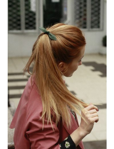 Chaque pièce est entièrement assemblée à la main par la créatrice elle-même, dans son atelier à Belgrade. Le magnifique nœud en cuir est attaché sur deux élastiques pour un meilleur maintien et une meilleure durabilité.