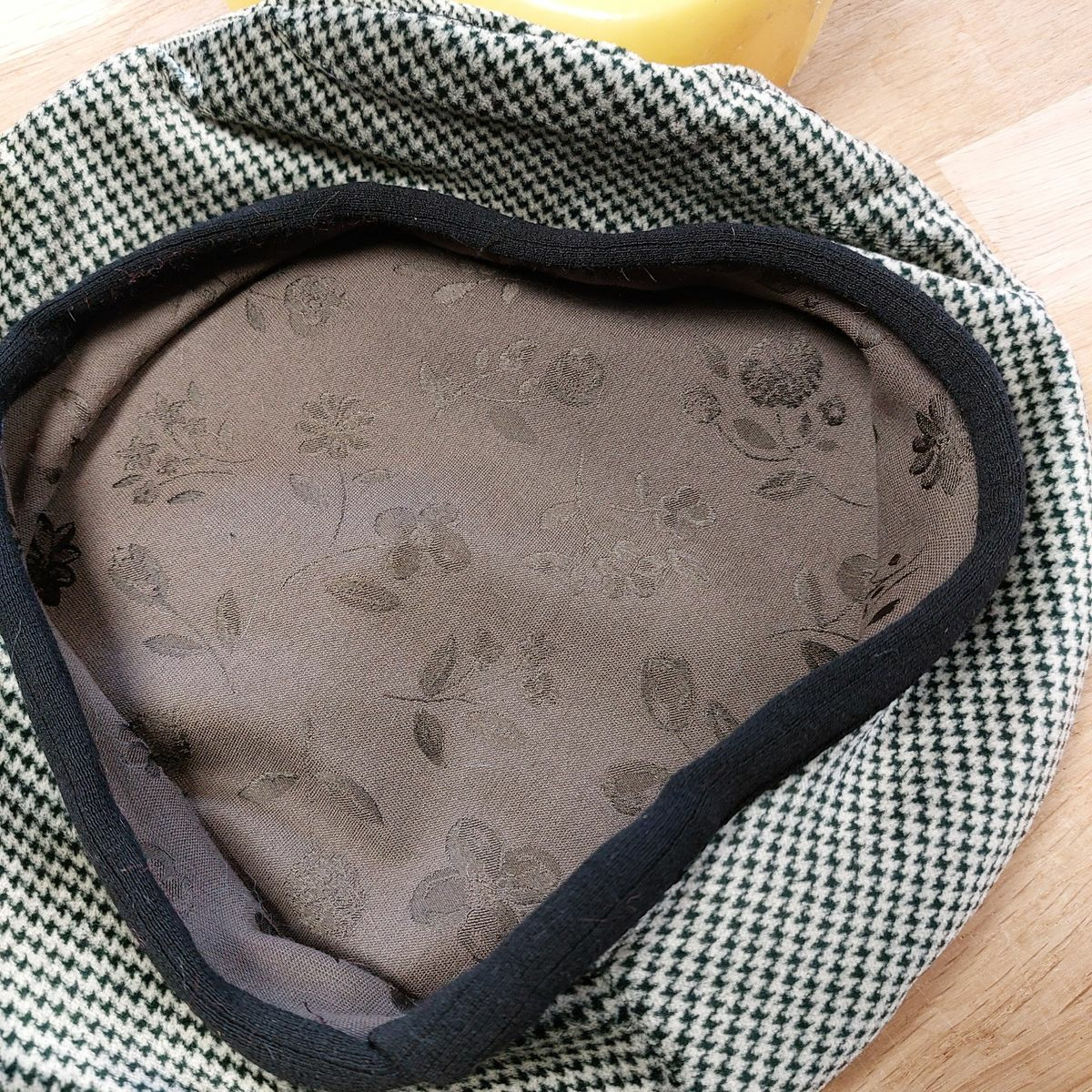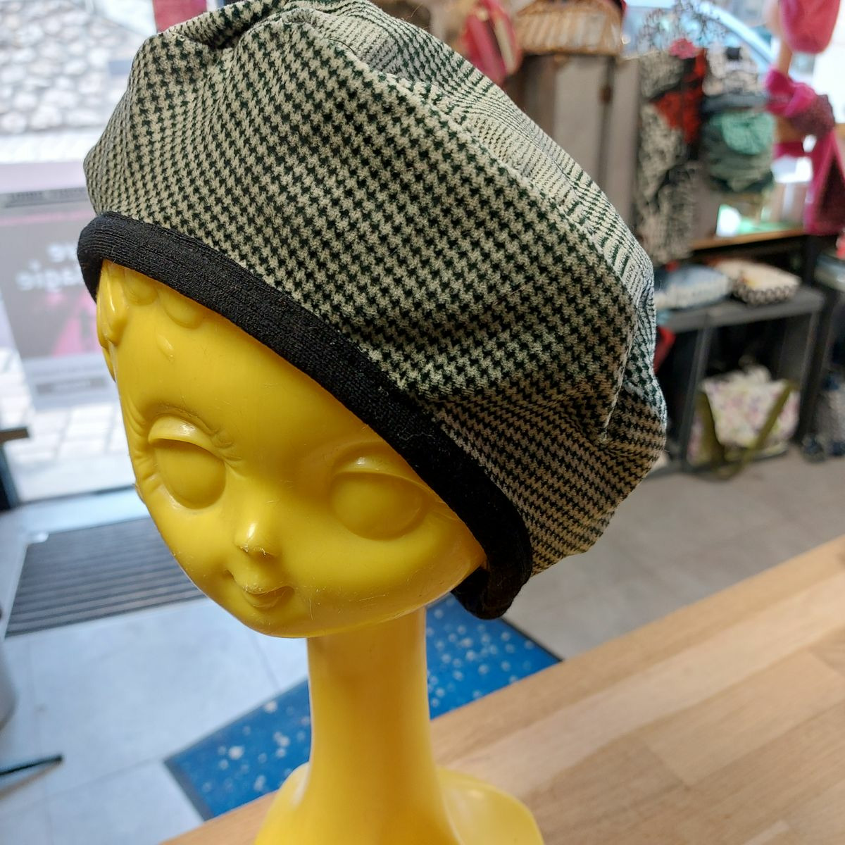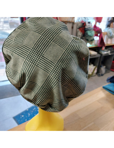 Beret Toudoux Kaki prince de galle et pied de poule en velour de coton doublure viscose et soie . Existe en plusieurs coloris a la boutique Cœur de fil. Je crée mes chapeaux selon l'inspiration du moment,la rencontre avec le tissu issu de fin de série de maison de grand créateur essentiellement, et la demande des clients.