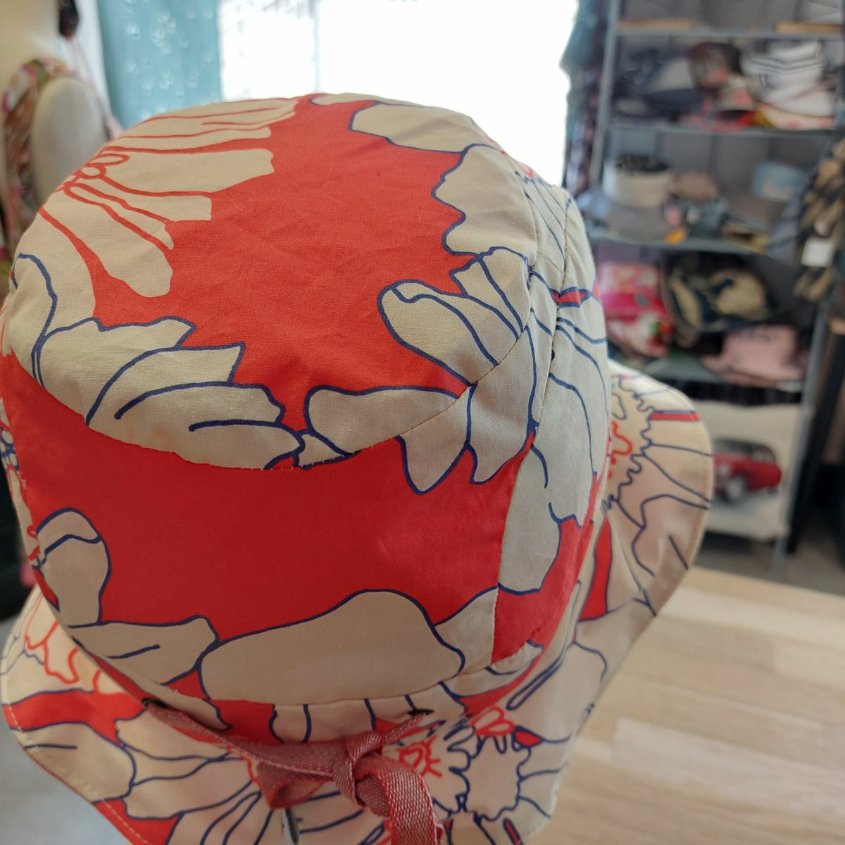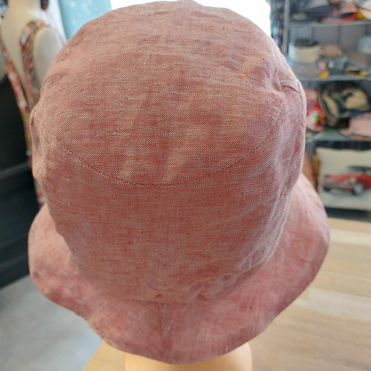 Chapeau "Amelie" réversible, une face en coton et une face lin. Mes créations son issu essentiellement de tissu de fin de stock de créateurs, ce qui en fait des pièces uniques ou de petite série (3-4 pièces maximum). Son côté réversible, vous en fait 2 en 1.