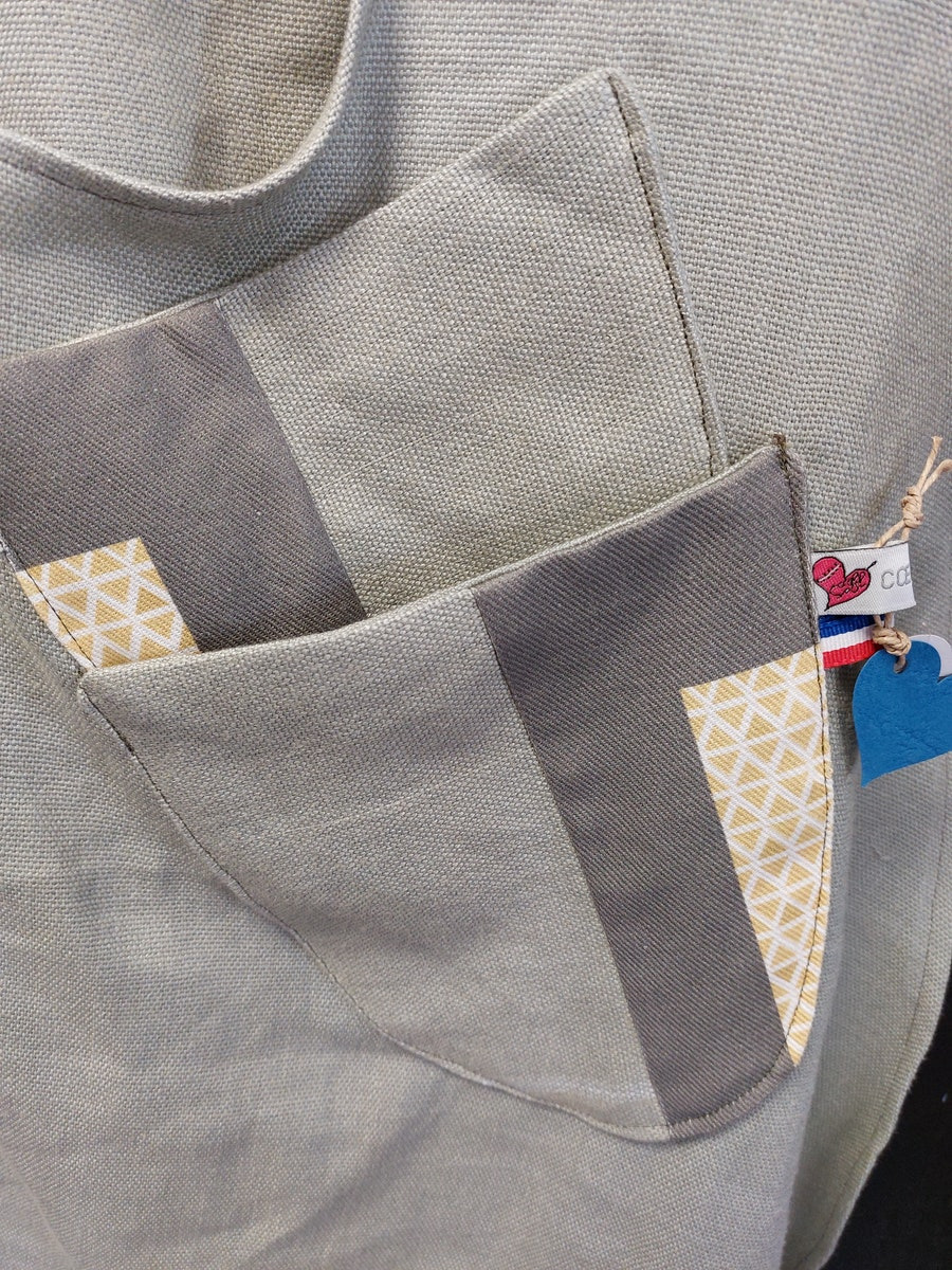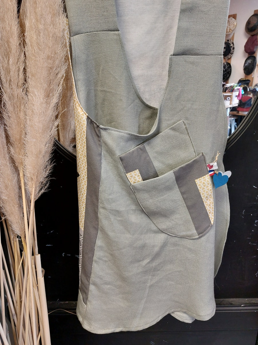 Tablier japonais taille M en coton et lin (pièce unique(.