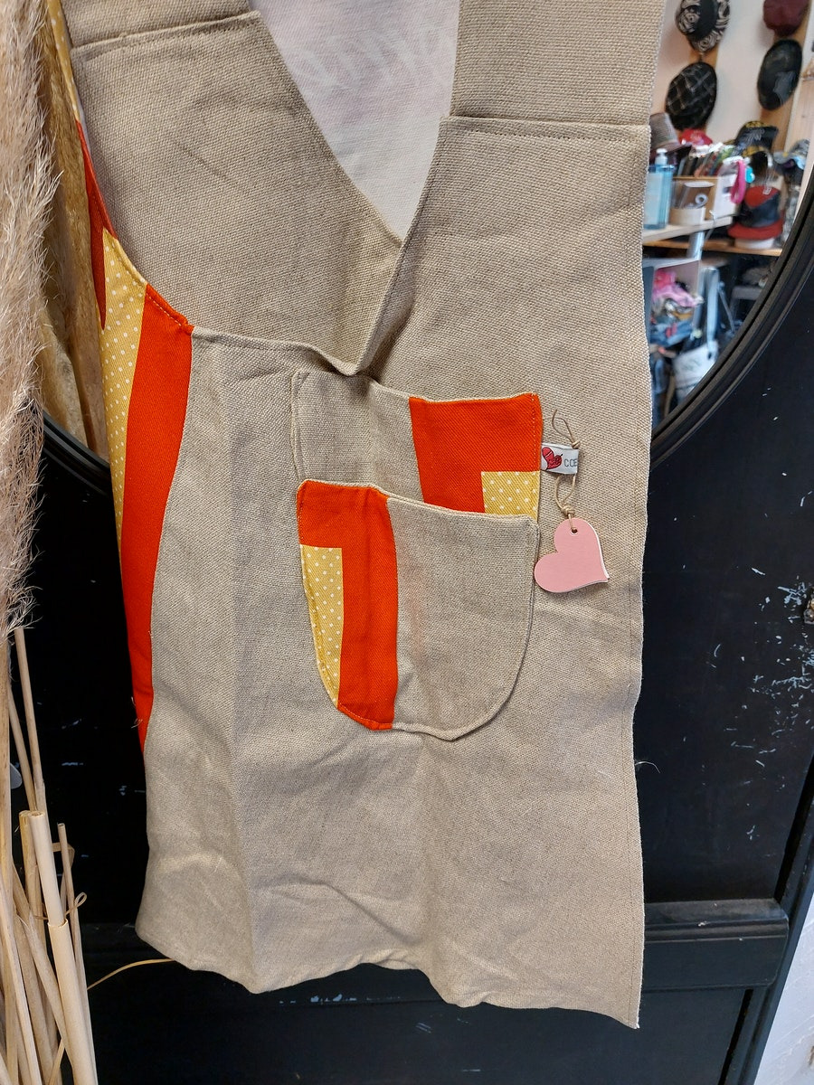 Le tablier japonais par Cœur de fil, original et unique c'est le compagnon idéal pour vos préparations culinaires. En lin, en coton, il se décline pour les adultes/ados en taille standard M (de 1m50 a 1m80), en L pour les plus de 1m80 et en taille enfant de 8 ans à 12 ans. Possibilité de sur mesure et toujours en pièce unique