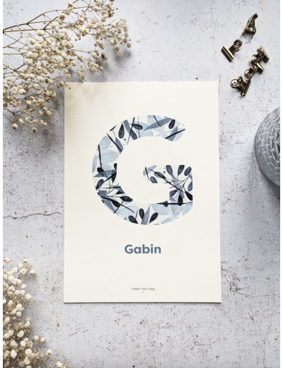 Illustrez la première lettre d'un prénom avec ce monogramme aux douces tonalités bleues.