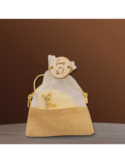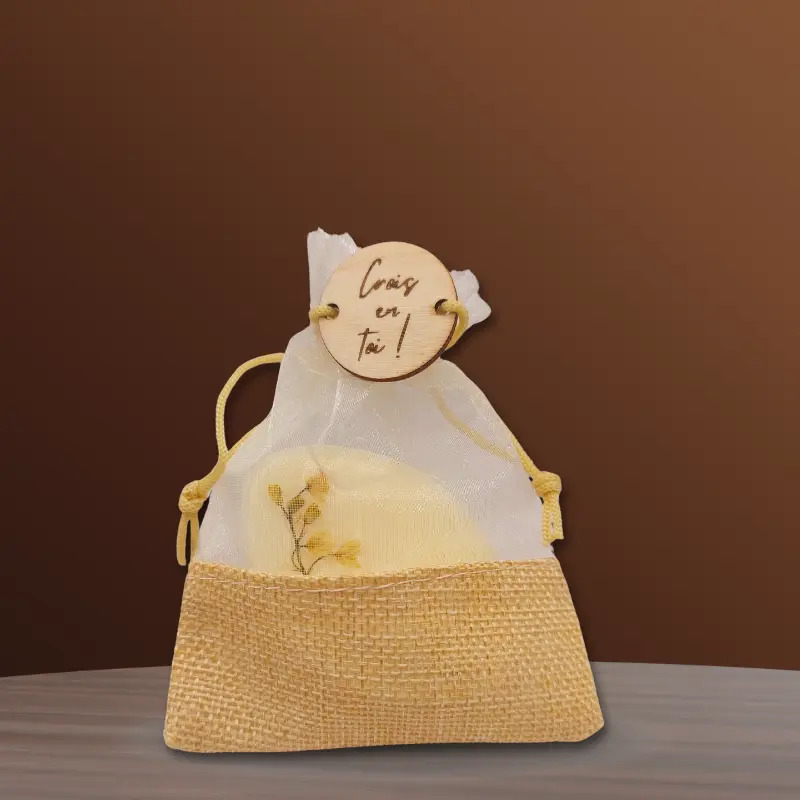 • Conditionnement : Vendue dans un sachet en organza et lin pour une suspension facile et élégante.