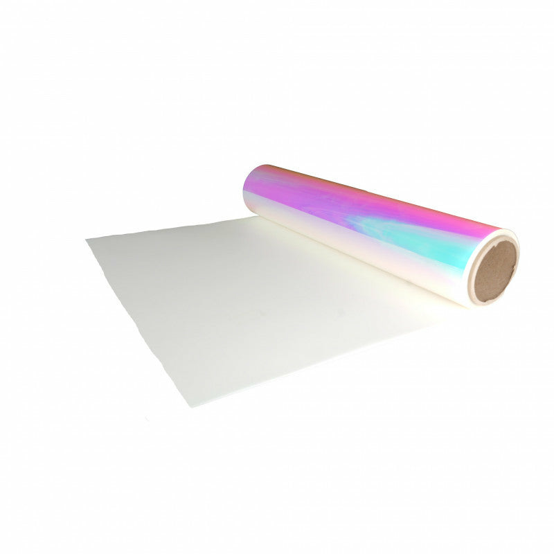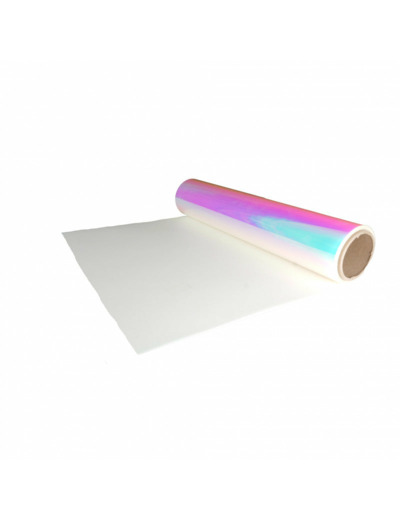 Avec ses finitions brillantes (effets irridescents de l'arc-en-ciel), ce film de transfert à chaud illuminera vos créations. Disponible en 6 nuances différentes aussi tendances les unes que les autres.