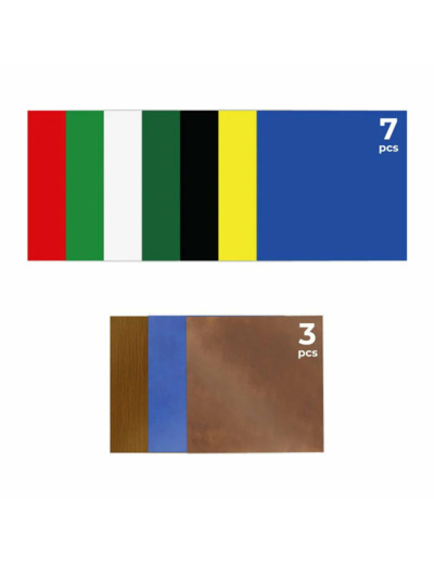 La boîte magique TOOCAA de 10 pièces contient 7 feuilles A4 plastique bicolores et 3 pièces A4 de cuir PU dans différents styles.