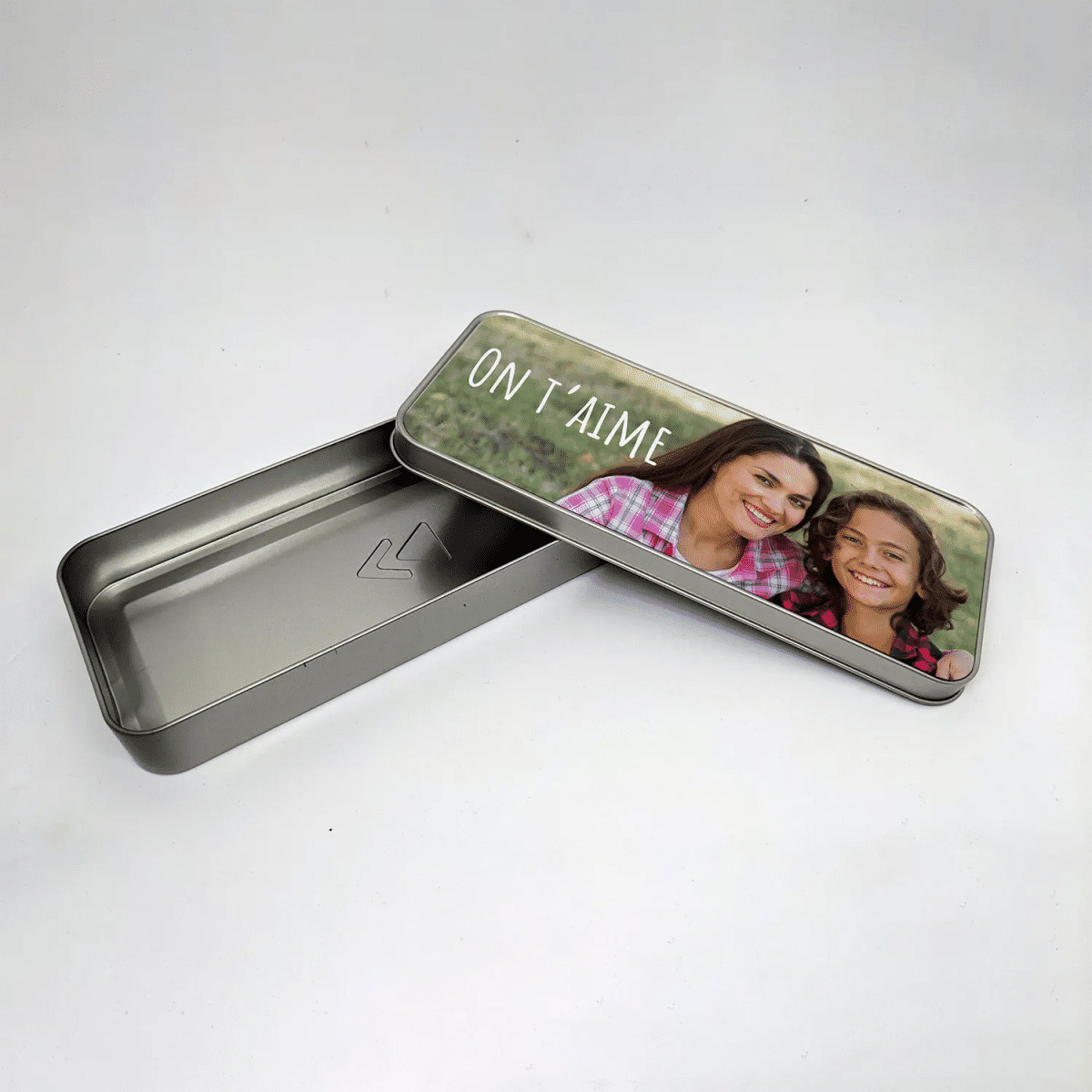 Son couvercle est entièrement personnalisable et imprimable selon vos souhaits. Nous le livrons dans une finition de grande qualité et cette boite est parfaite pour offrir aux autres un objet spécial et unique.