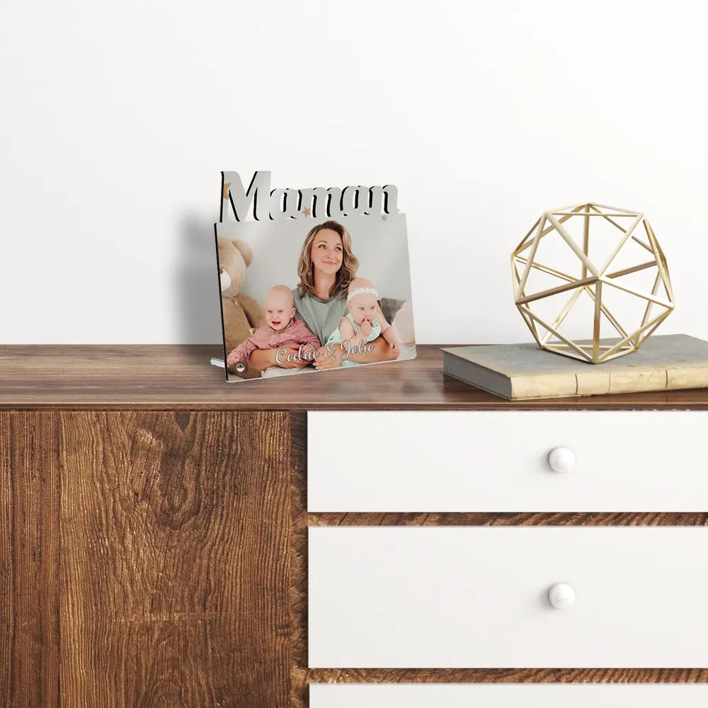 Vous pouvez personnaliser notre cadre photo maman avec une de vos photos et un message pour en faire un présent unique et durable.