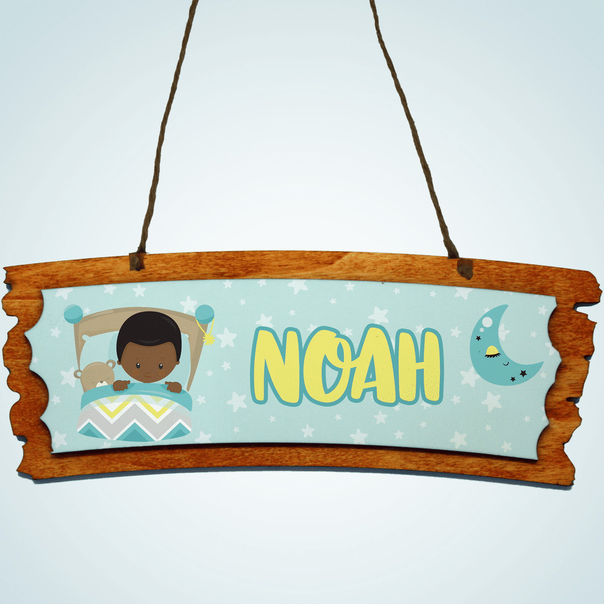 Nos pancartes de porte personnalisées pour enfant sont conçues pour durer. Le bois HDF utilisé est non seulement esthétique, mais aussi robuste, garantissant une longue durée de vie et une résistance aux aléas du quotidien. La corde de 50 cm fournie permet une installation rapide et facile.