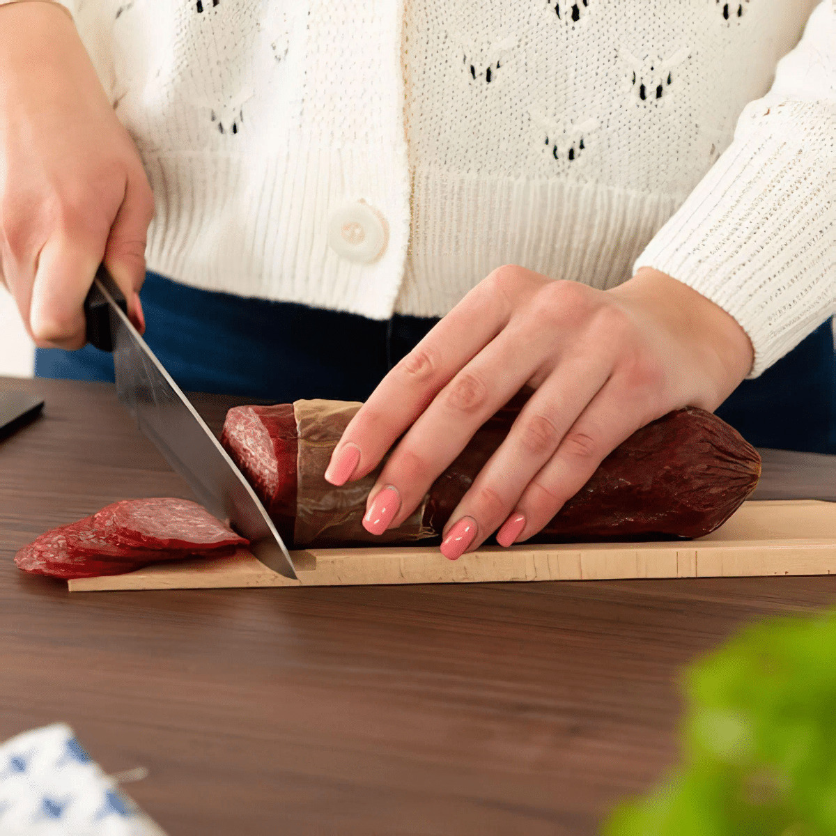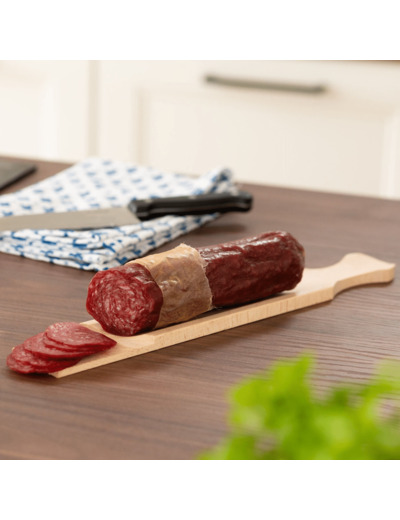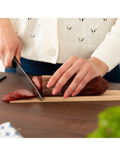 Avec notre planche à découper en bois, trancher le saucisson est un jeu d'enfant ! La conception recourbée de la surface garde la saucisse bien en place tout en vous permettant de découper en fines tranches.