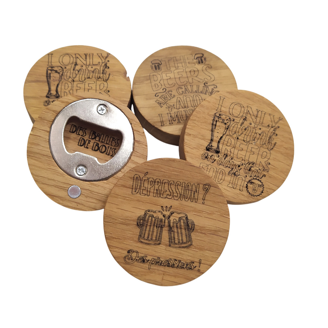 Décapsuleur aimanté en chêne – L’alliance du bois et de la bonne humeur.