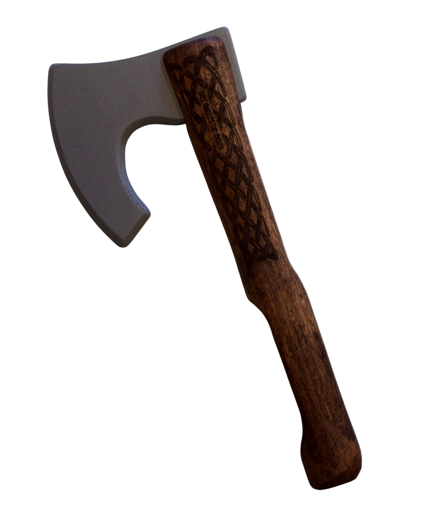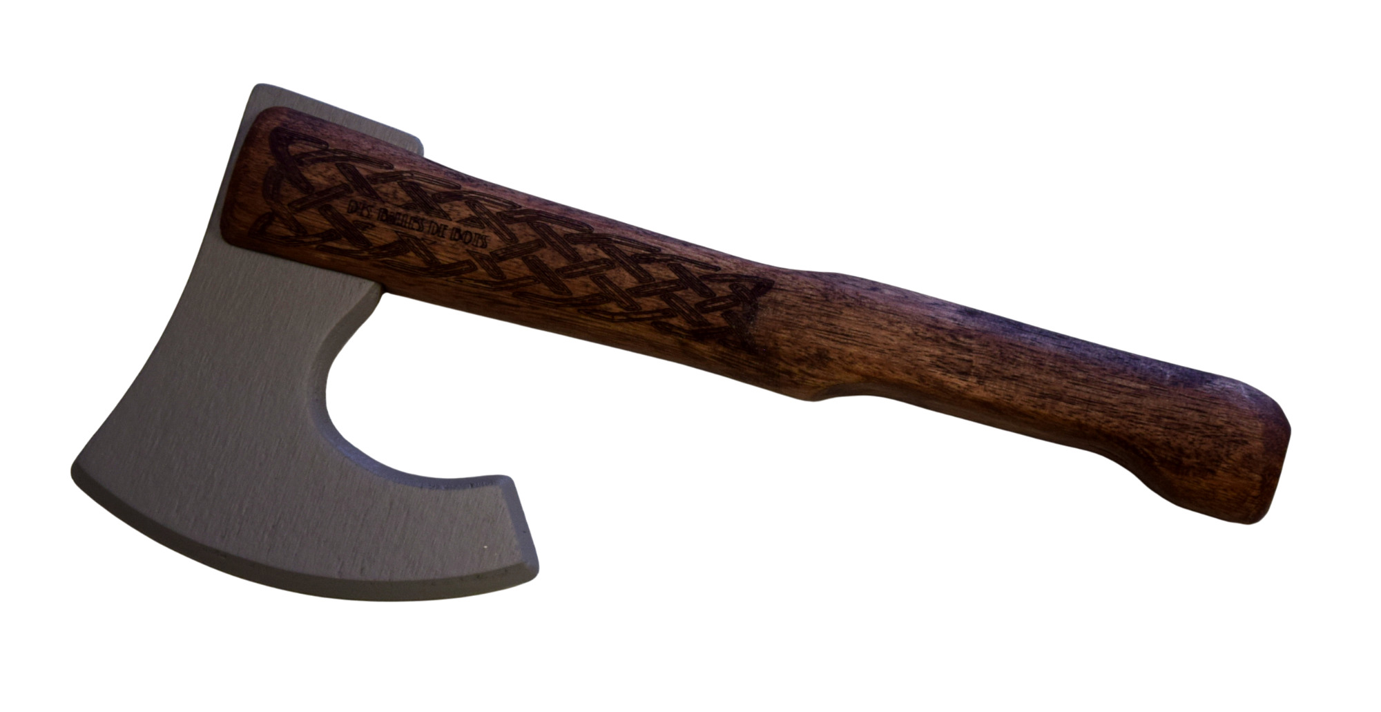 Son manche en frêne, teinté d’un bois foncé, assure une prise en main solide et agréable. La lame, en contreplaqué laqué gris, est douce au toucher et parfaitement adaptée au jeu. Chaque pièce est soigneusement poncée et protégée pour une surface lisse et sûre. Une création symbolique et joyeuse, fidèle à l’esprit des jouets d’antan.