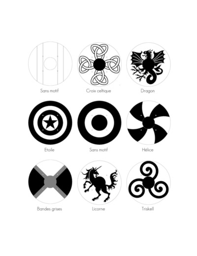De forme ronde et bombée, ce bouclier est réalisé en bois français et peint entièrement à la main. Recouvert de cinq couches de laque à l’eau haut de gamme, il résiste aux chocs et au temps. Les motifs sont inspirés des symboles gaulois et varient selon les modèles.