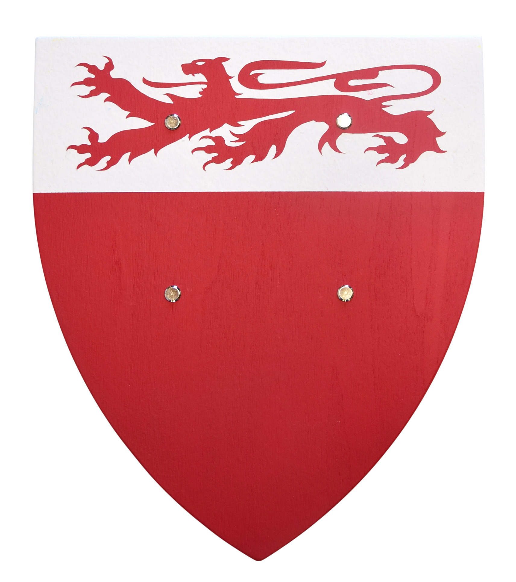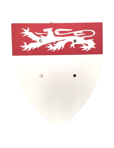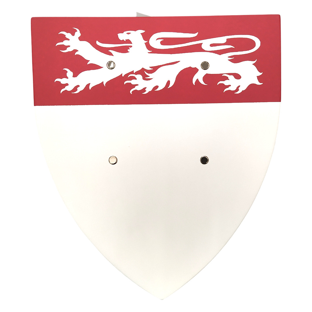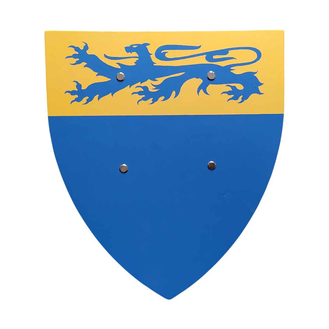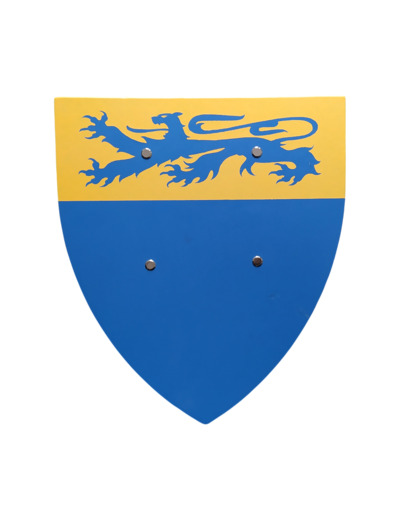 L’écu est façonné en contreplaqué de peuplier, un bois français léger et solide. Chaque exemplaire est peint à la main avec cinq couches de laque à l’eau de haute qualité, garantissant des couleurs éclatantes et résistantes. Les motifs respectent les règles héraldiques traditionnelles et chaque bouclier est conforme à la norme jouet.
