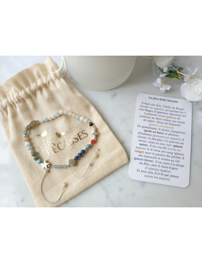 Ce bracelet raconte l'histoire de Jésus grâce à une succession de pierre de couleur qui racontent pierres à pierres les grandes étapes de sa vie.