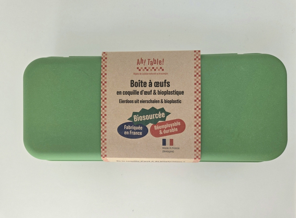 ✅Fabriquée en Bretagne à partir de coquilles d'œuf et de bioplastique utilisant des huiles alimentaires recyclées, notre boîte est non seulement respectueuse de l'environnement, mais aussi durable et solide.