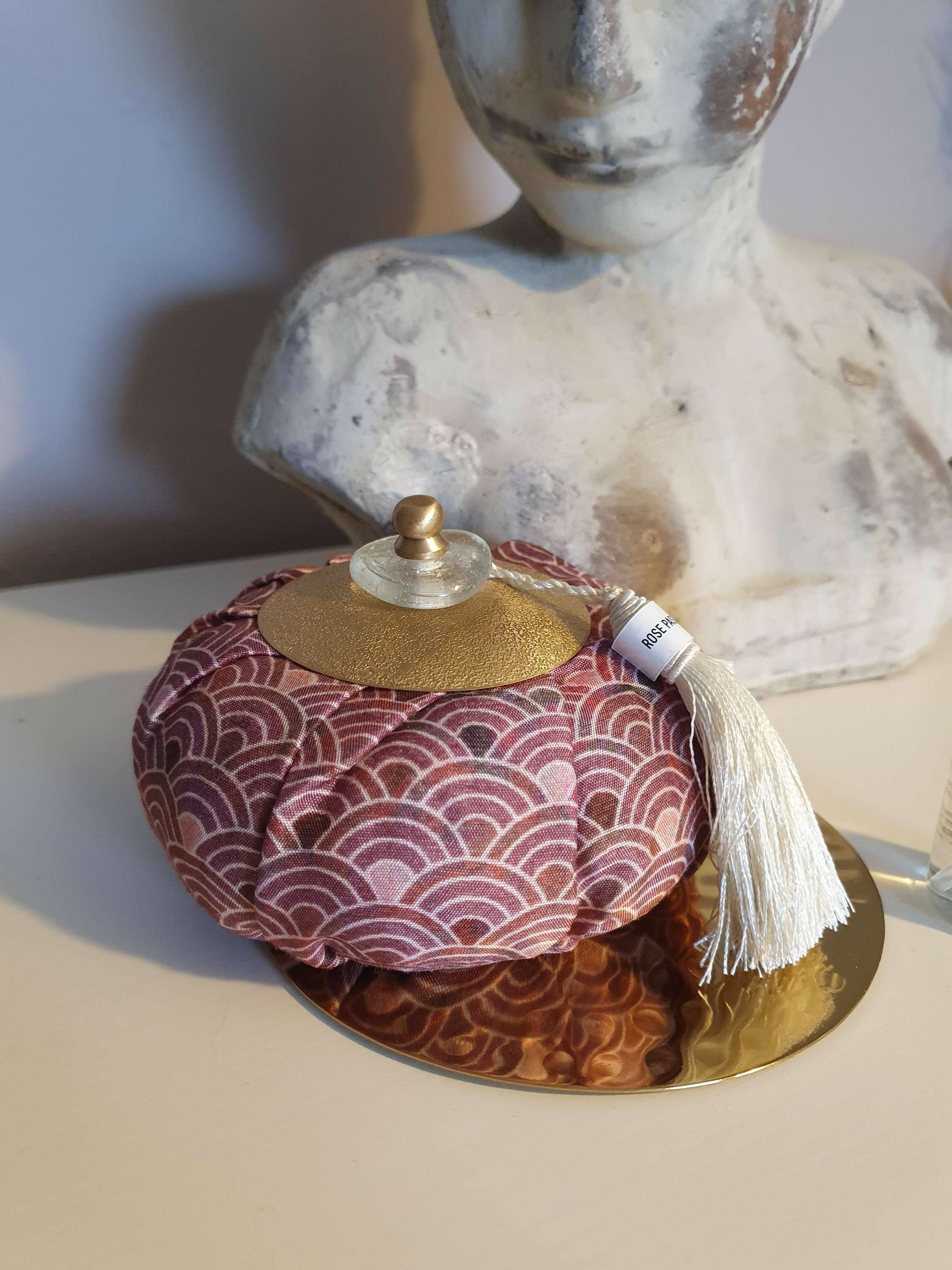 Posée sur son porte Aumônière d'un diamètre de 12 cm.Porte Aumônière Dorée inclue.